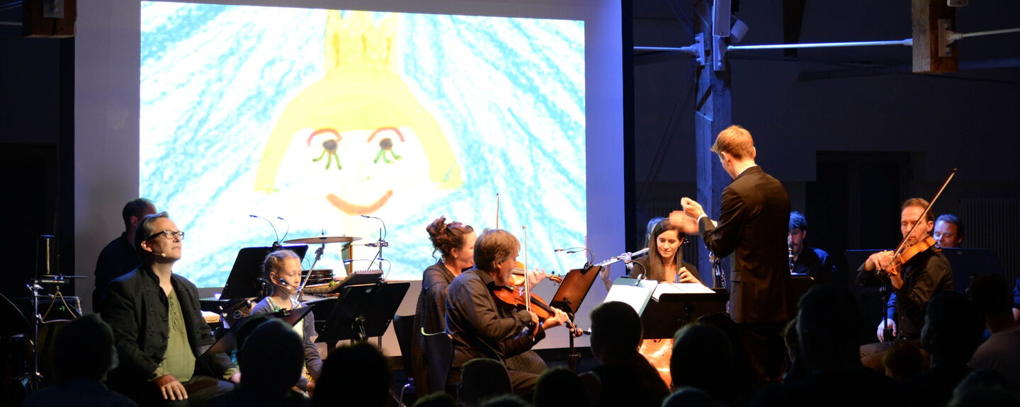 Auf einer Leinwand hinter dem Orchester, das Emanuel Dantscher dirigierte, wurden unterdes von Kindern gemalte Bilder projiziert. Der Komponist und seine Tochter lasen die Texte, wobei nicht nur der Papa, sondern auch Melinda Hoffmann beeindruckend klar und sicher vortrug.