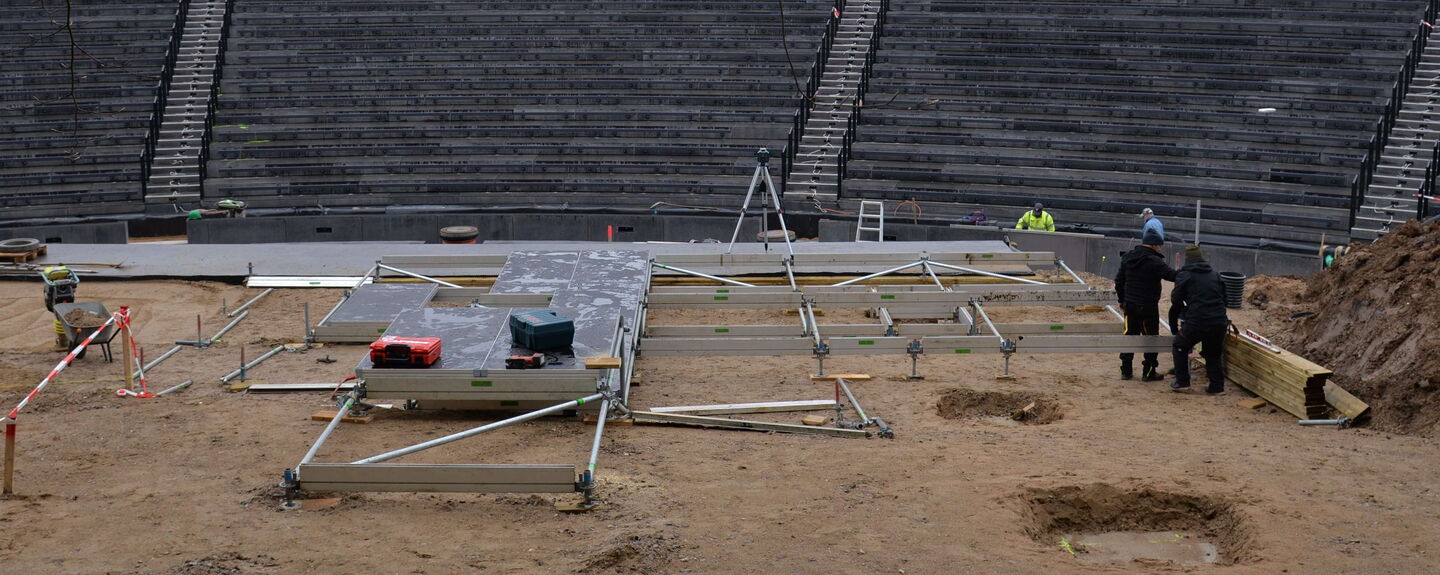 Denn nicht nur die Tribüne entsteht komplett neu. Auch im Bühnenbereich wurden neue Leitungen und Infrastruktur verlegt. „Alle reden von der neuen Tribüne, dabei ist es eigentlich eine komplett neue Spielstätte“, erklärt Falk Herzog.