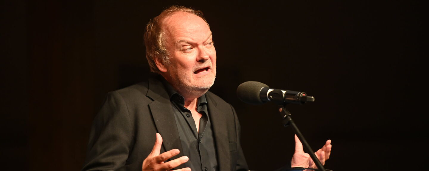 Ihnen wurde am Sonnabend, 16. September, eine fulminante szenische Lesung geboten. Allen Figuren in John Buchans Romanklassiker „Die 39 Stufen“ verlieh der Hamburger Schauspieler und Sprecher, der seit über 40 Jahren bekannt ist als Stimme von Peter Shaw in den „Die drei ???“-Hörspielen, eine individuelle Stimme. Mit ganzem Körpereinsatz war Wawrczeck bei der Sache und bot einige Passagen fast wie in einer Theateraufführung auswendig dar.