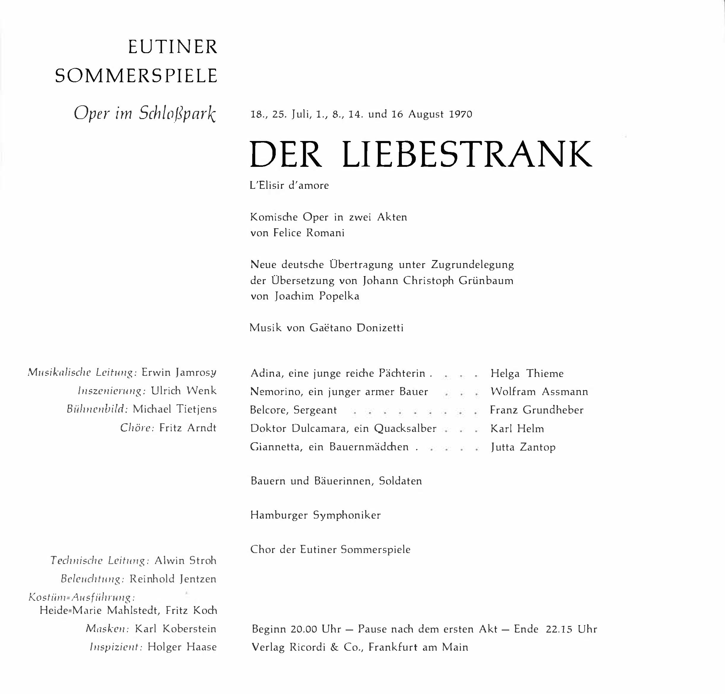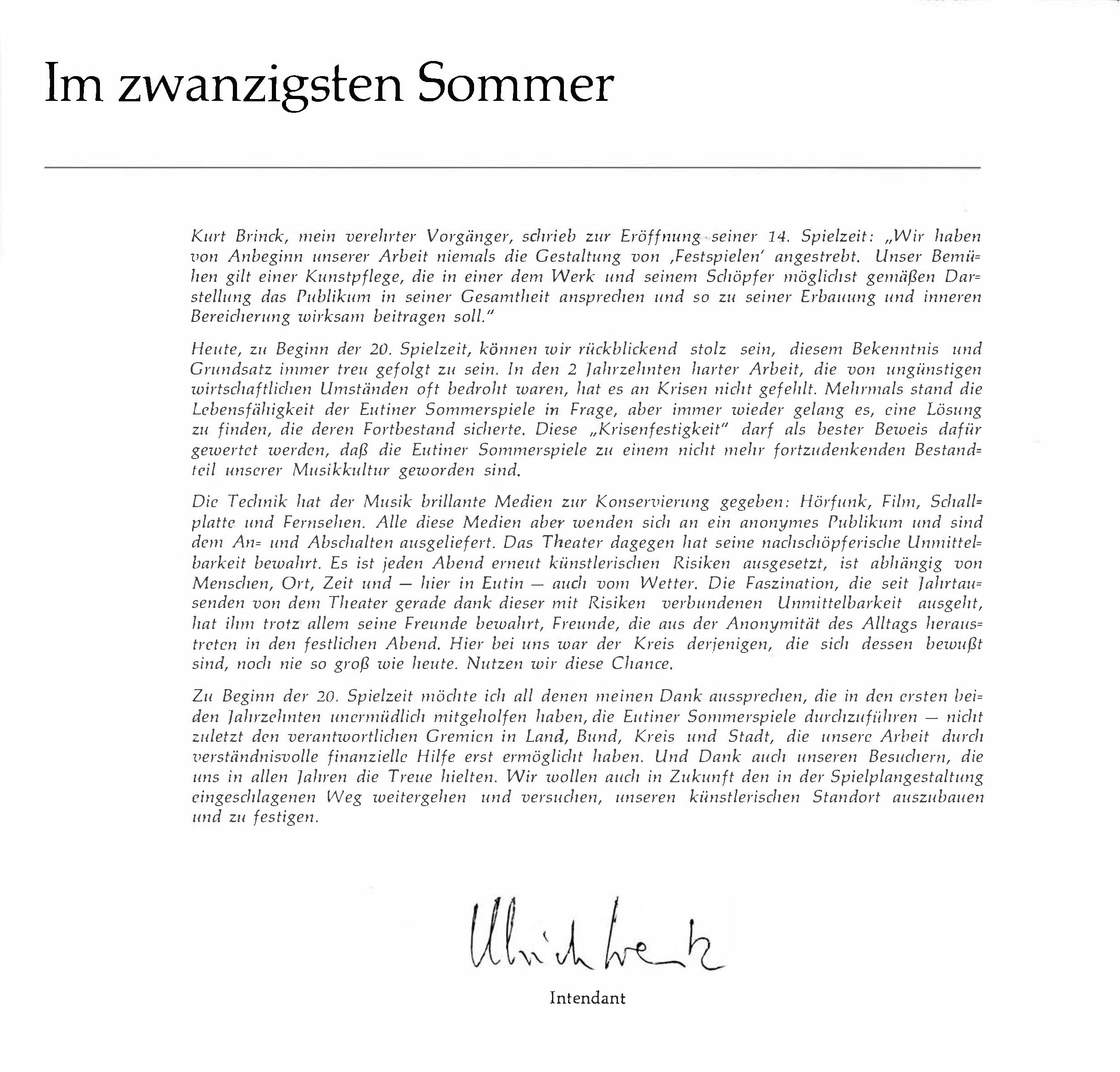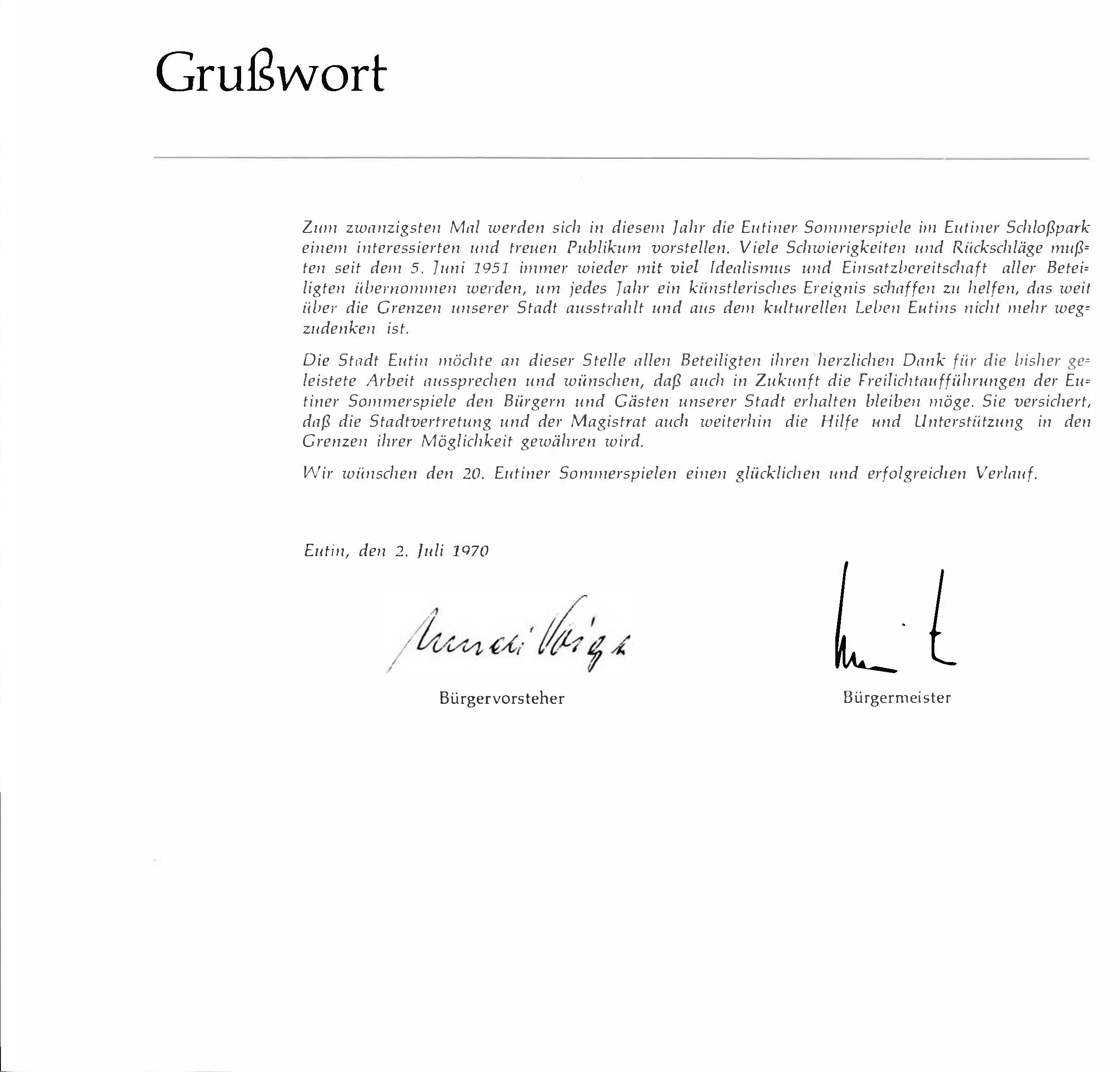 Die historischen Texte und Abbildungen dieser Rückschau (bis in die 1950er Jahre) stammen aus den jeweiligen Programmheften und Fotosammlungen und spiegeln ihre Zeit. Sie könnten Begriffe und Darstellungen enthalten, die heute als diskriminierend oder unangemessen gelten. Die Eutiner Festspiele distanzieren sich daher ausdrücklich von solchen Inhalten. Auch die Erwähnung teils umstrittener Persönlichkeiten erfolgt ausschließlich im historischen Zusammenhang. Der digitale Rückblick soll Geschichte transparent machen und zur kritischen Auseinandersetzung mit Sprache, Haltung und Zeitgeschehen anregen. Wo erforderlich, ergänzen wir erläuternde Hinweise. Hinweise auf sachliche Fehler oder notwendige Kontexte nehmen wir gerne unter info@eutiner-festspiele.de entgegen.