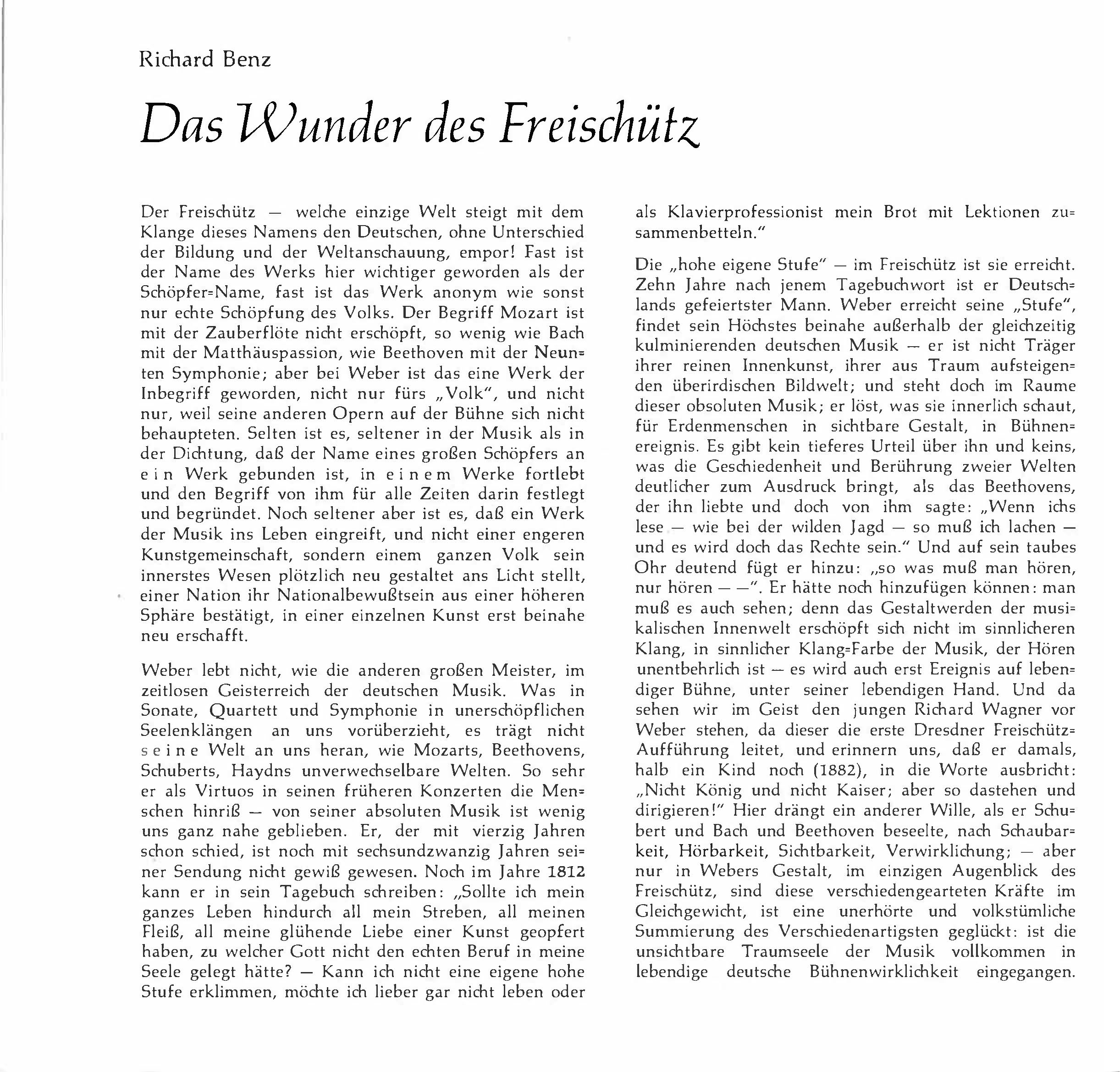 Das Wunder des Freischütz – Richard Benz
