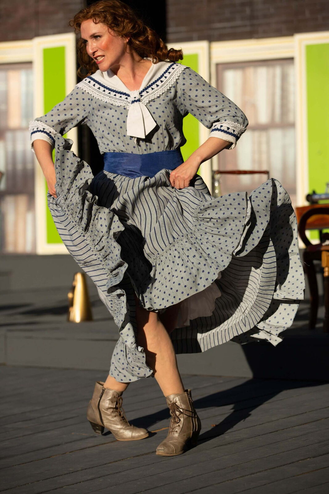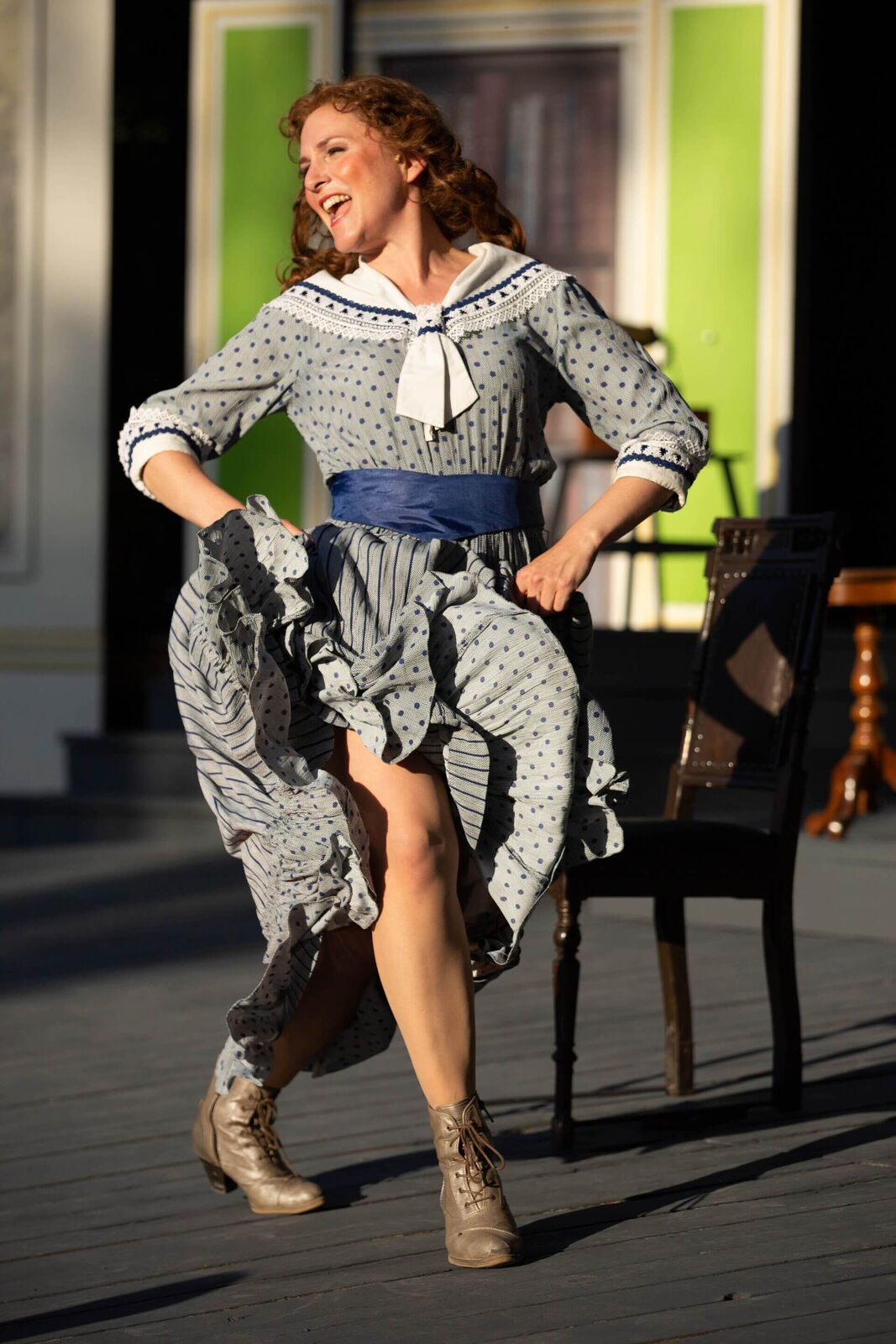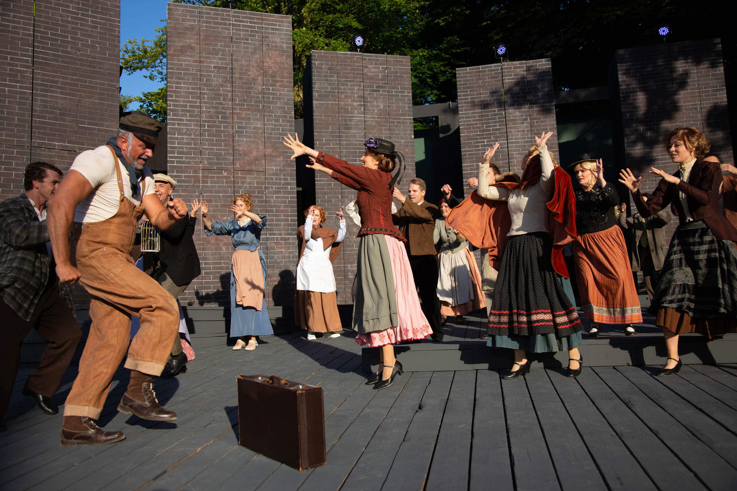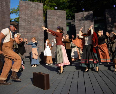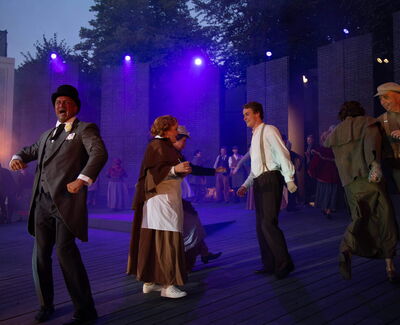 Wie wollen Sie das Problem lösen, ein in 18 szenische Bilder gefasstes Erfolgsstück auf der Freilichtbühne ohne Vorhang und Drehbühne schwungvoll ablaufen zu lassen? Wir werden vor den Augen der Zuschauer ganz öffentlich und leicht choreografisch die Szenen wechseln. Die Choreografie wird durch die Bühne nicht unbedingt beeinträchtigt. Es ist natürlich immer etwas hinderlich und ungesund, auf einer schrägen Bühne zu tanzen. Zum Beispiel hatte Cats im Hamburger Operettenhaus auch eine stark angeschrägte Bühne, trotzdem mussten die Choreografien klappen. Ich persönlich empfand gerade Drehungen und Sprünge bei dieser schrägen Bühne als sehr schwierig und gefährlich.