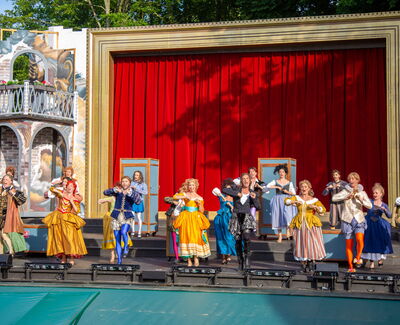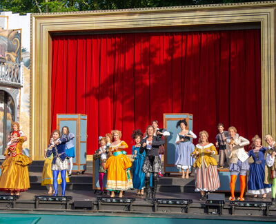 Hinweis: Die historischen Texte und Abbildungen dieser Rückschau (bis in die 1950er Jahre) stammen aus den jeweiligen Programmheften und Fotosammlungen und spiegeln ihre Zeit. Sie könnten Begriffe und Darstellungen enthalten, die heute als diskriminierend oder unangemessen gelten. Die Eutiner Festspiele distanzieren sich daher ausdrücklich von solchen Inhalten. Auch die Erwähnung teils umstrittener Persönlichkeiten erfolgt ausschließlich im historischen Zusammenhang. Der digitale Rückblick soll Geschichte transparent machen und zur kritischen Auseinandersetzung mit Sprache, Haltung und Zeitgeschehen anregen. Wo erforderlich, ergänzen wir erläuternde Hinweise. Hinweise auf sachliche Fehler oder notwendige Kontexte nehmen wir gerne unter info@eutiner-festspiele.de entgegen.