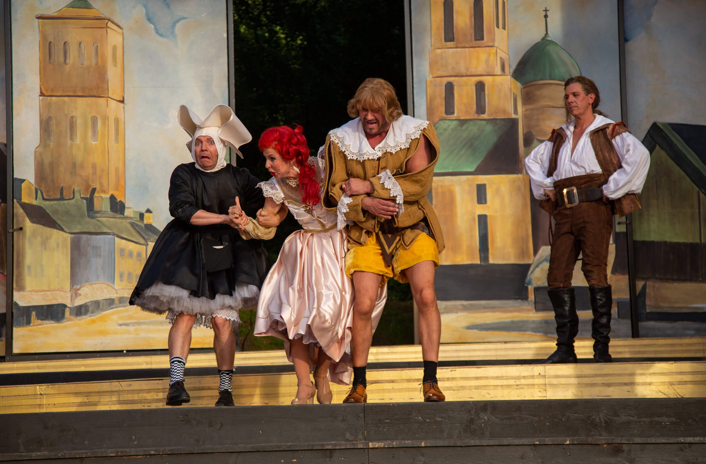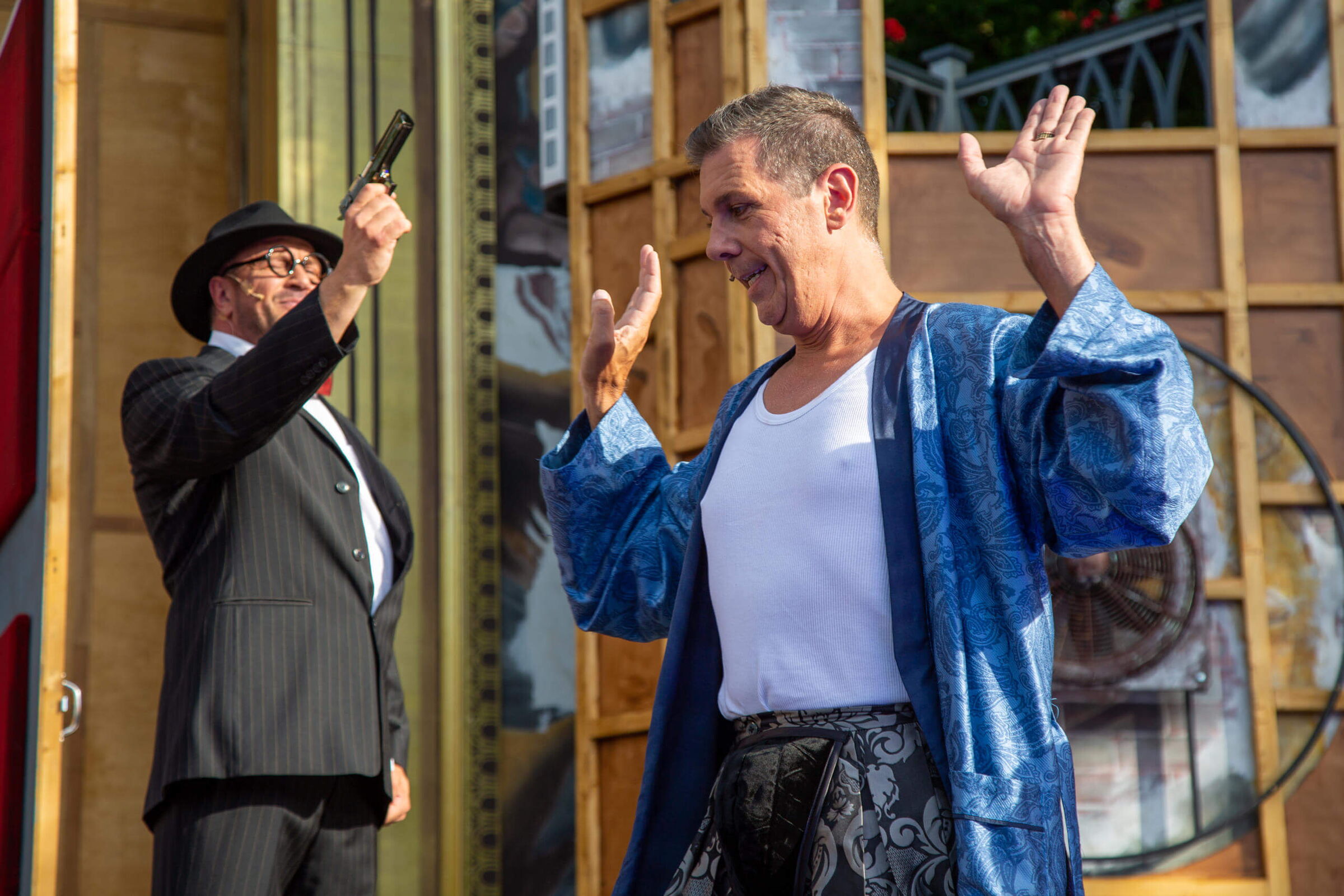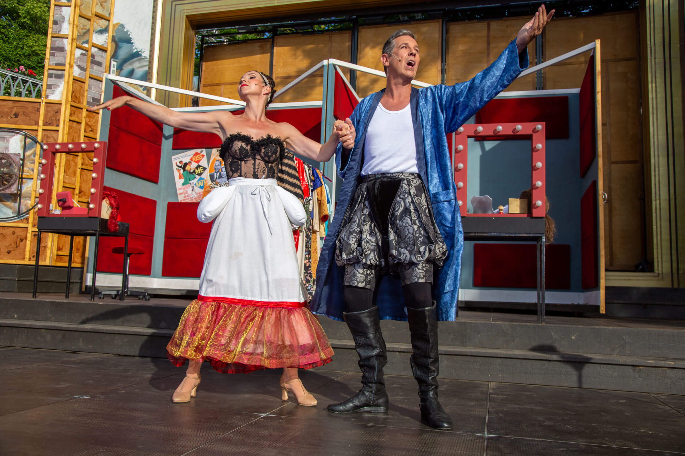 In meiner Eutiner Inszenierung habe ich, mit Vorahnung auf diese Frage, meine Tanzschuhe vollends an den Nagel gehängt. Ich bin ja auch nicht mehr der Jüngste. Ein Problem für die Choreografie sehe ich für 2019 nicht mehr, denn wir haben mit Vanni Viscusi einen sehr guten, bekannten Choreografen mit Freilichtbühnen-Erfahrung gewinnen können. Die Eutiner Festspiele haben außerdem mit einer von unserem neuen Bühnenmeister und Bühnenbildner Jörg Brombacher völlig neugestalteten Bühne eine mehr als nur musicaltaugliche Spielfläche bekommen.