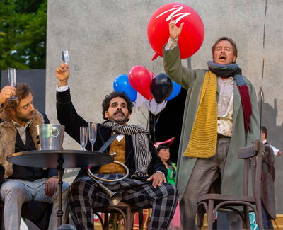 Und tatsächlich: Über der ganzen „Boheme“ Puccinis strahlt La Speranza, die Hoffnung, sie ist einfach da, und geheimnisvoll wirkt sie über den (Bühnen-) Tod hinaus. Die aktuell uns so erschreckende Prüfungszeit Corona-Pandemie zeigt: Die Erhaltung und Wiedergewinnung der Lebenskunst tut bitter Not! So ist die existenzielle Not dieser Studenten-Boheme Realität, also keineswegs pittoresk, auch wenn uns Puccini anfangs eine sehr heitere Grundstimmung vorgaukeln will.