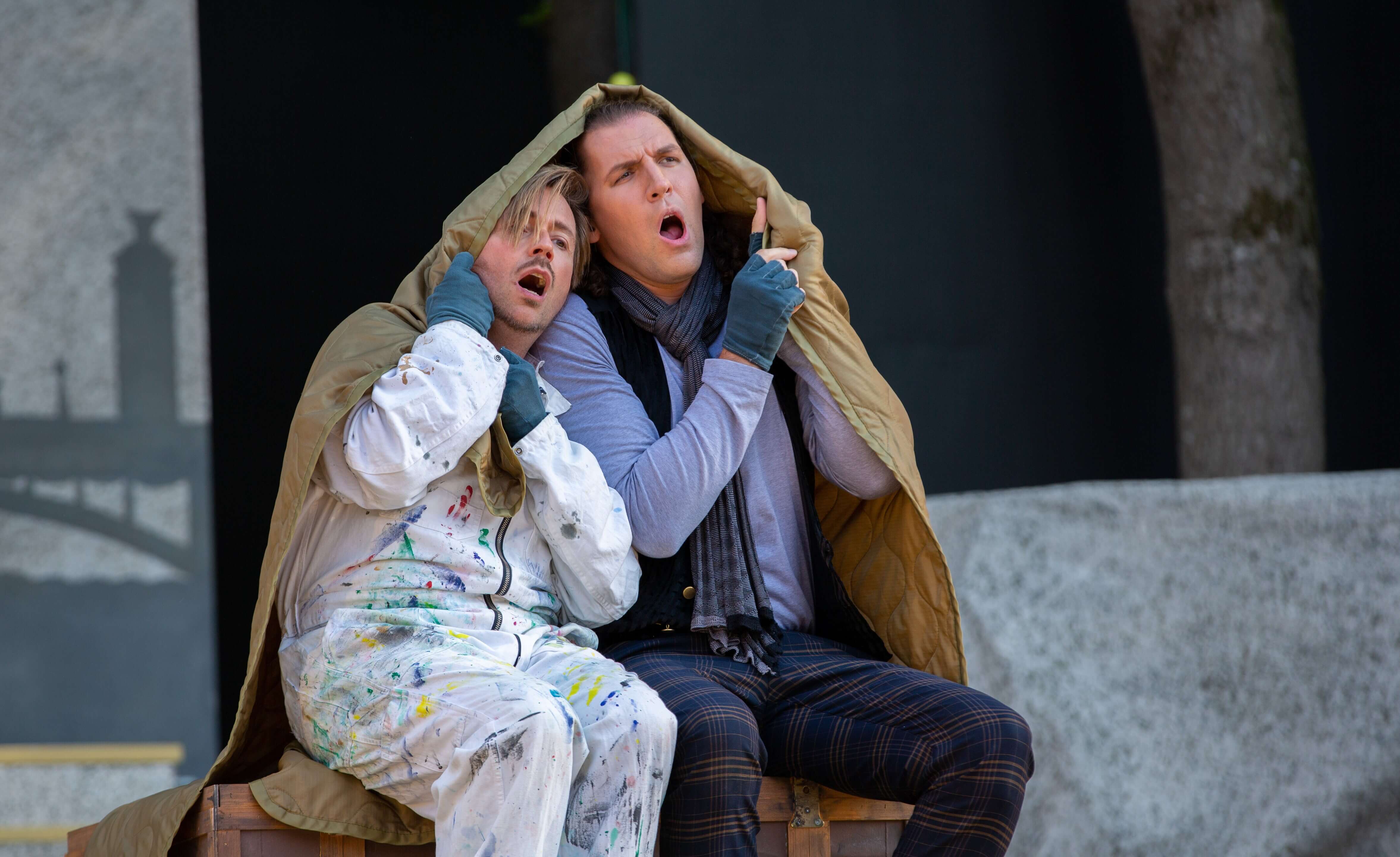 Musik gibt einer Geschichte den Halt - aber eine gute Geschichte ist nicht auf eine Musikrichtung festgelegt. La Boheme ist eine gute Geschichte. Wäre es anders, wäre der Transfer in das New York der frühen 1990er-Jahre nicht möglich gewesen. Auch hier geht es um Armut, um Einsamkeit - insbesondere aber um den drohenden Verlust der Wohnung durch Mietschulden und Gentrifizierung. Jonathan Larson nennt sein Musical, das später auch verfilmt wurde, daher Rent (Miete). Die moderne Tuberkulose heißt AIDS, das mit Drogengebrauch und Homosexualität assoziiert wird. Aber anders als in La Boheme wird die Krankheit offen thematisiert und hängt wie ein Damoklesschwert über den Figuren. Marcello und Rodolfo werden zu Mark, einem Filmemacher, und Roger, einem HIV-positiven Musiker, die im East Village leben. Ihr Vermieter und früherer Mitbewohner Benny (bei Puccini: Benoit) ist durch Heirat zu Geld gekommen und will plötzlich Miete kassieren.