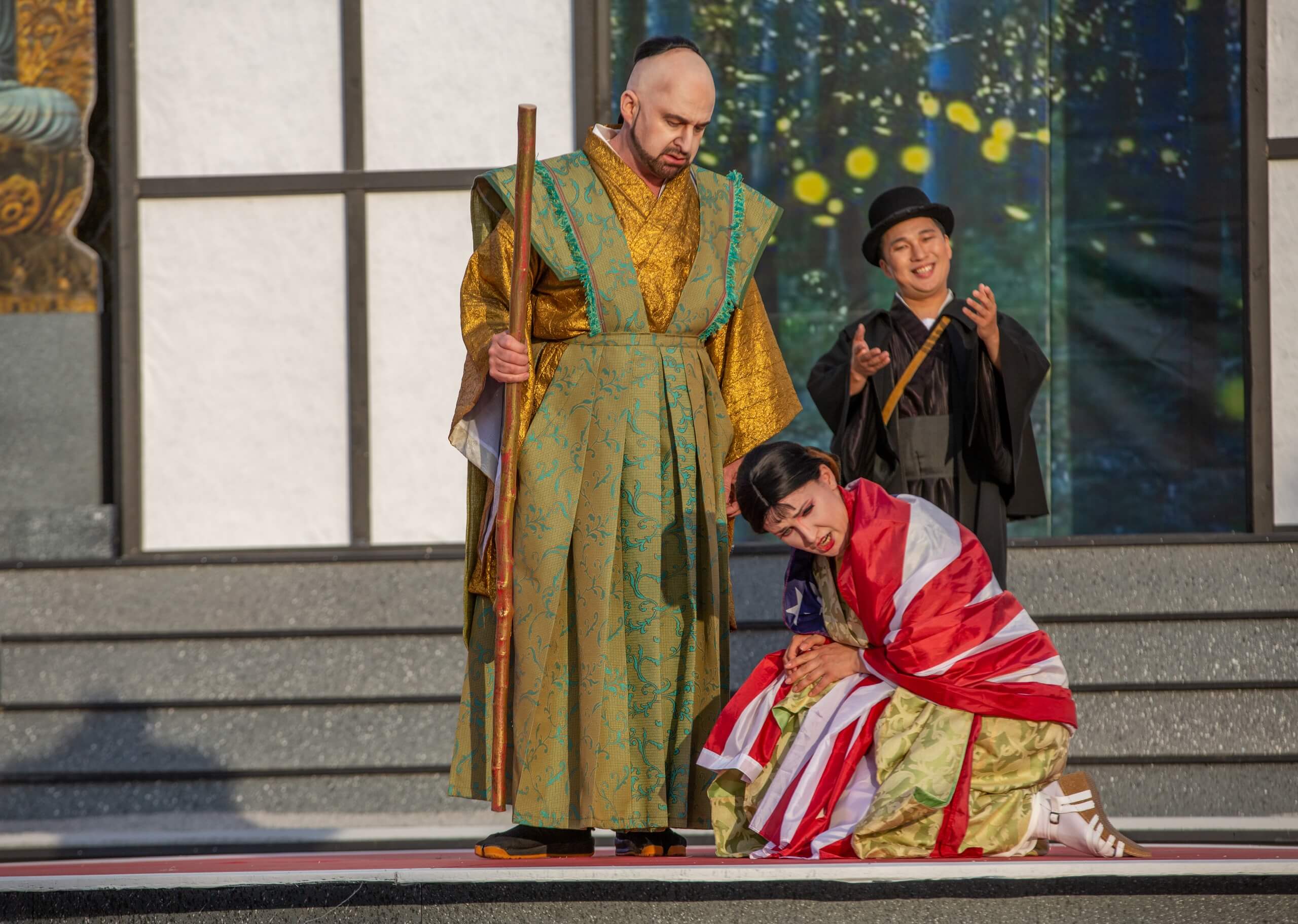 Giacomo Puccinis „Madama Butterfly“ trägt den Untertitel „Tragedia giapponese“ – und diese Tragödie beginnt für die blutjunge Japanerin „Madama Butterfly“, als sie den Amerikaner Pinkerton kennenlernt: Sie wird dem Marineoffizier zu seiner Unterkunft bei Nagasaki gleich mit zur Verfügung gestellt. Die kleine „Frau Schmetterling“ fühlt sich zu dem schneidigen Militär hingezogen, der aber nimmt sie nicht wirklich als fühlendes Wesen wahr. Für ihn ist sie ein exotisches Abenteuer, sie wird zur Verschmähten und Verächteten.