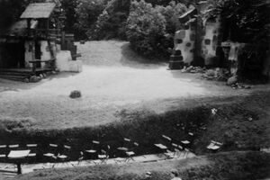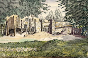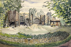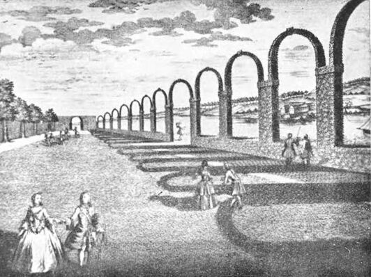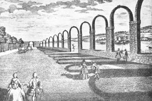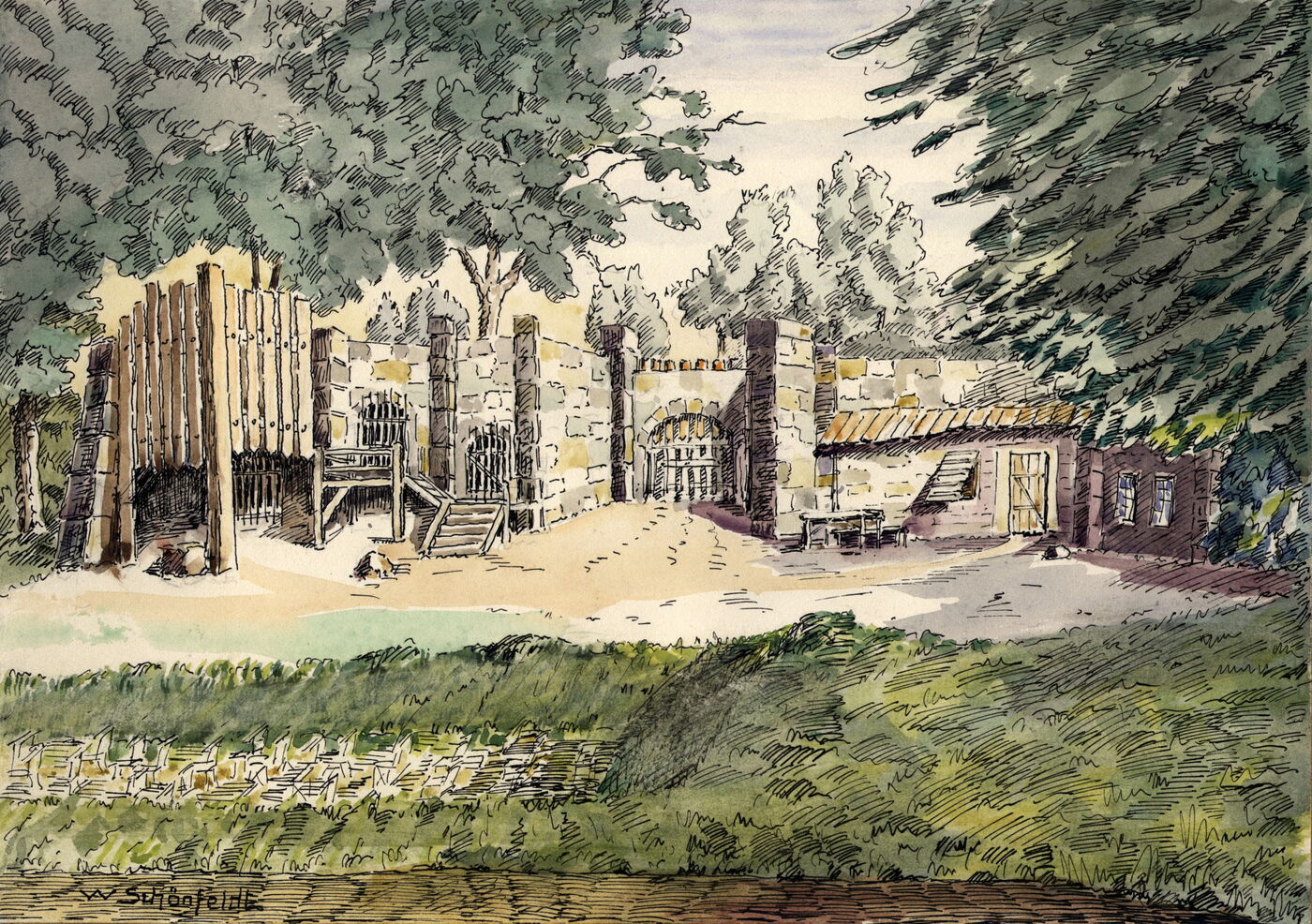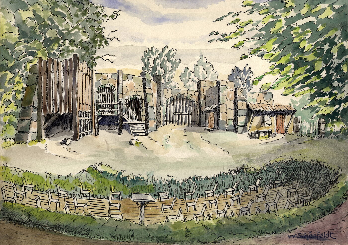 Unnatürlich gekünstelt wie Kleidung und Gebaren der Menschen war ja auch die Gestaltung des Parkes, durch den sie schritten. Sie wurde durch die Künstelei des Rokoko, durch steife symmetrische Wegführung und Laubengänge, durch sorgfältig zur Unnatur geschnittene Hecken und geschorene Taxusnischen gekennzeichnet. Solche von kunstvoll gestutzten Cypressen eingefasste Wege führten auch von der Brücke, die das Schloss über den Burggraben mit dem Park verband, zum Konzert- und Opernhaus und darüber hinaus zu der breiten Anhöhe auf der flachen Halbinsel, die jetzt das Freilichttheater trägt. Anders die Menschen damals als jetzt, anders die französisierenden tändelnden Opern in Vater Webers Park-Konzerthaus als heute die Aufführungen auf der nahen Freilichtbühne unter dem Sternenhimmel.