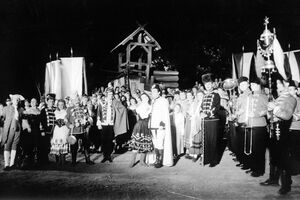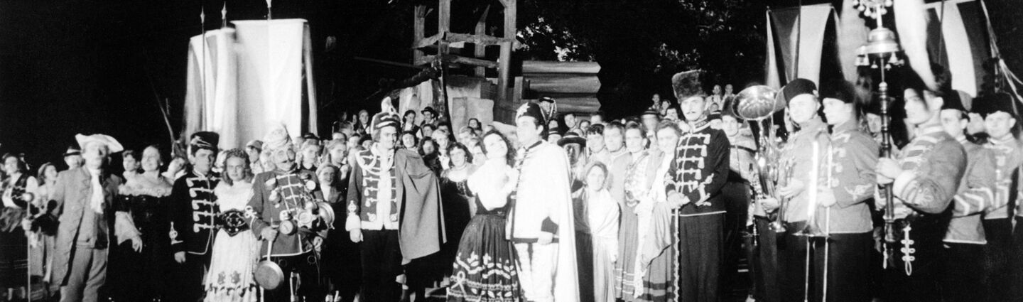 Hinweis: Die historischen Texte und Abbildungen dieser Rückschau (bis in die 1950er Jahre) stammen aus den jeweiligen Programmheften und Fotosammlungen und spiegeln ihre Zeit. Sie könnten Begriffe und Darstellungen enthalten, die heute als diskriminierend oder unangemessen gelten. Die Eutiner Festspiele distanzieren sich daher ausdrücklich von solchen Inhalten. Auch die Erwähnung teils umstrittener Persönlichkeiten erfolgt ausschließlich im historischen Zusammenhang. Der digitale Rückblick soll Geschichte transparent machen und zur kritischen Auseinandersetzung mit Sprache, Haltung und Zeitgeschehen anregen. Wo erforderlich, ergänzen wir erläuternde Hinweise. Hinweise auf sachliche Fehler oder notwendige Kontexte nehmen wir gerne unter info@eutiner-festspiele.de entgegen.
