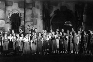 Johannes Schocke, Städtische Bühnen Köln und Staatsoper Harnburg, der im Vorjahr den Max in „Freischütz“ sang, sehen wir nun als den Zigeunerbaron Barinkay. Den Zsupan hat Kammersänger Karl Jöken, bekannter Bühnensänger in Deutschlands großen Theatern, übernommen, und Kammersängerin Carla Spletter, bedeutende Künstlerin der ehemaligen Berliner Staatsoper, ist für die Partie der Saffi gewonnen worden. Die Czipra wird von Prau Erika Koch-Hörnemann (Städtische Bühnen Lübeck) gesungen, und Georg Mundt (Ottokar im „Freischütz“), der von Hamburg aus an den Edinbourgher Opernfestspielen beteiligt ist, wird den Grafen Honamay spielen.