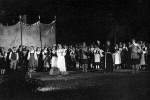 Diese deutscheste Oper, bei deren Uraufführung im Juni 1821 in Dresden Weber gleicherweise umjubelt wurde wie bei der letzten Aufführung am 30. Mai in London, wo er bald darauf am 5. Juni 1826 starb, bietet sich in der Schlossgarten-Freilichtbühne dar, als habe sich hier und nirgends anders vorher die Handlung um die Liebe des jungen Försters und seiner Agathe abgespielt. Sie beginnt mit einem farbenprächtigen Bild. Jubelnd kommt das feiernde Volk vom Hügel herab. Der reiche Bauer Ki1ian ist Schützenkönig geworden, aber Max, Jägerbursche des Erbförsters Kuno und mit dessen Tochter Agathe verlobt, schoss schlecht, ist darob verdrießlich und wird gehänselt.