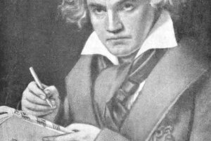 Ludwig van Beethoven wurde am 16. Dezember 1770 in Bonn geboren. Nach schweren Jugendjahren kam er in seine Stadt Wien, wo er studierte und wirkte. Schon mit dreißig Jahren spürte er die Anfänge seiner ihn in die Einsamkeit treibenden Taubheit. Erschütternd ist sein Seelenbild, das man aus seinem „Heiligenstadter Testament (1802)“ erkennt. Dennoch bekennt er:,,Ich will dem Schicksal in den Rachen greifen, ganz niederbeugen soll es mich gewiss nicht!“ Ein Biograph schreibt:,,Es war Beethovens Schicksal, leiden zu müssen, damit er den Menschen die Verklärung des Leides, die Überwindung des Schmerzes, das Hinaufarbeiten zur Freude verkünden kann (Storck)“, und das Humanitätsbekenntnis des Ministers in der Schlussszene des „Fidelio“ ist auch das Beethovens.