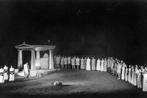 Hingebungsvoll unterstützt durch den aus breiten Kreisen der Bevölkerung gebildeten Festspielchor und den altbewährten Männergesangvereins von 1843 sowie durch die Mitwirkung hervorragender Solokräfte hat die Festspielgesellschaft unter der künstlerischen Leitung des Regisseurs Kurt Brinck.