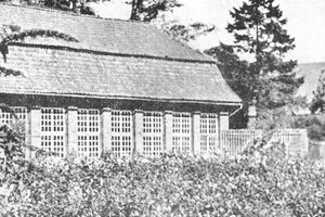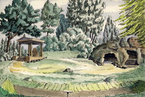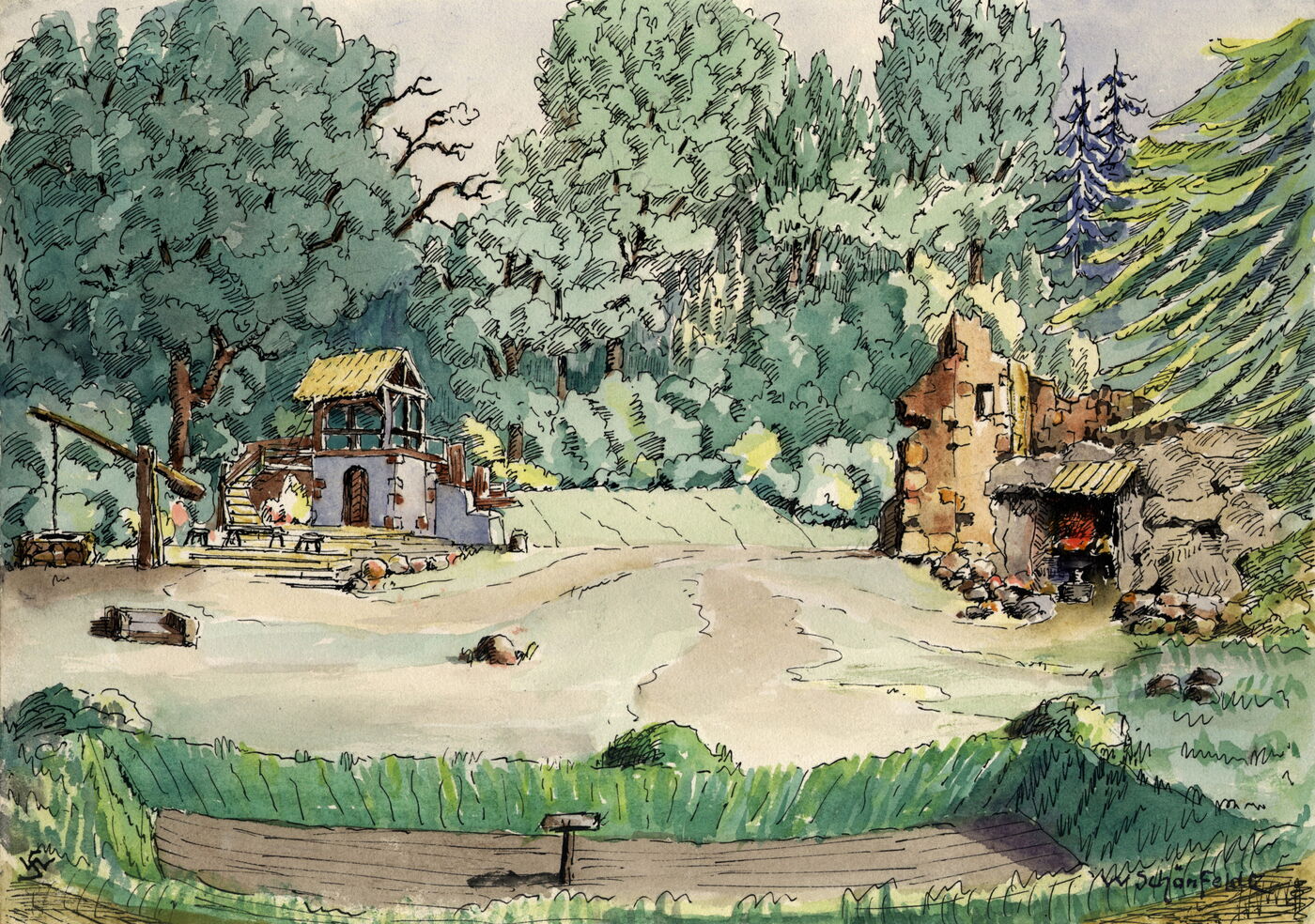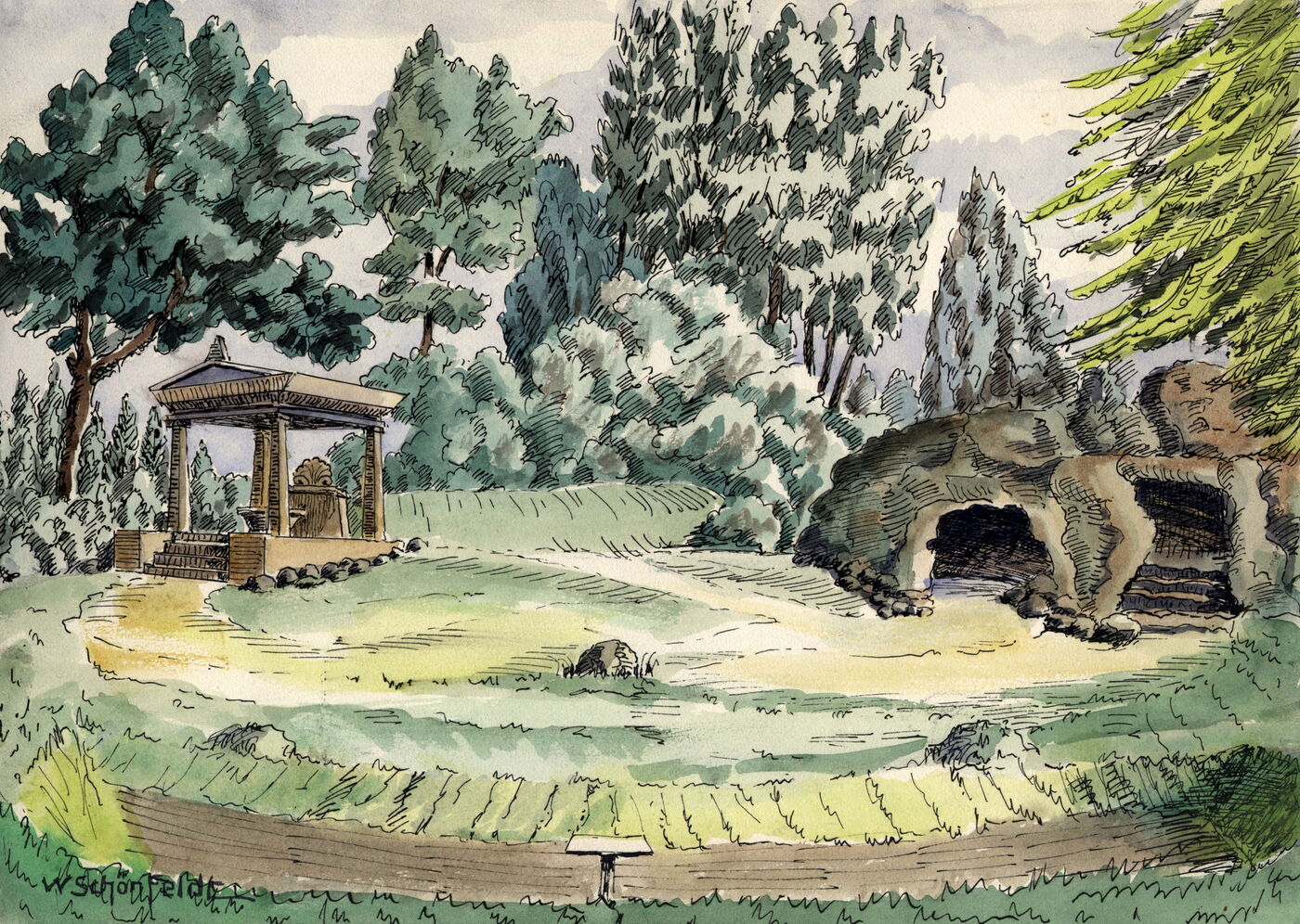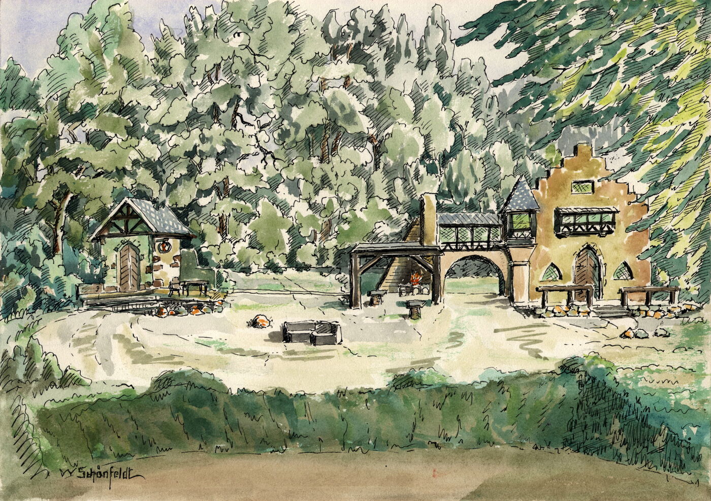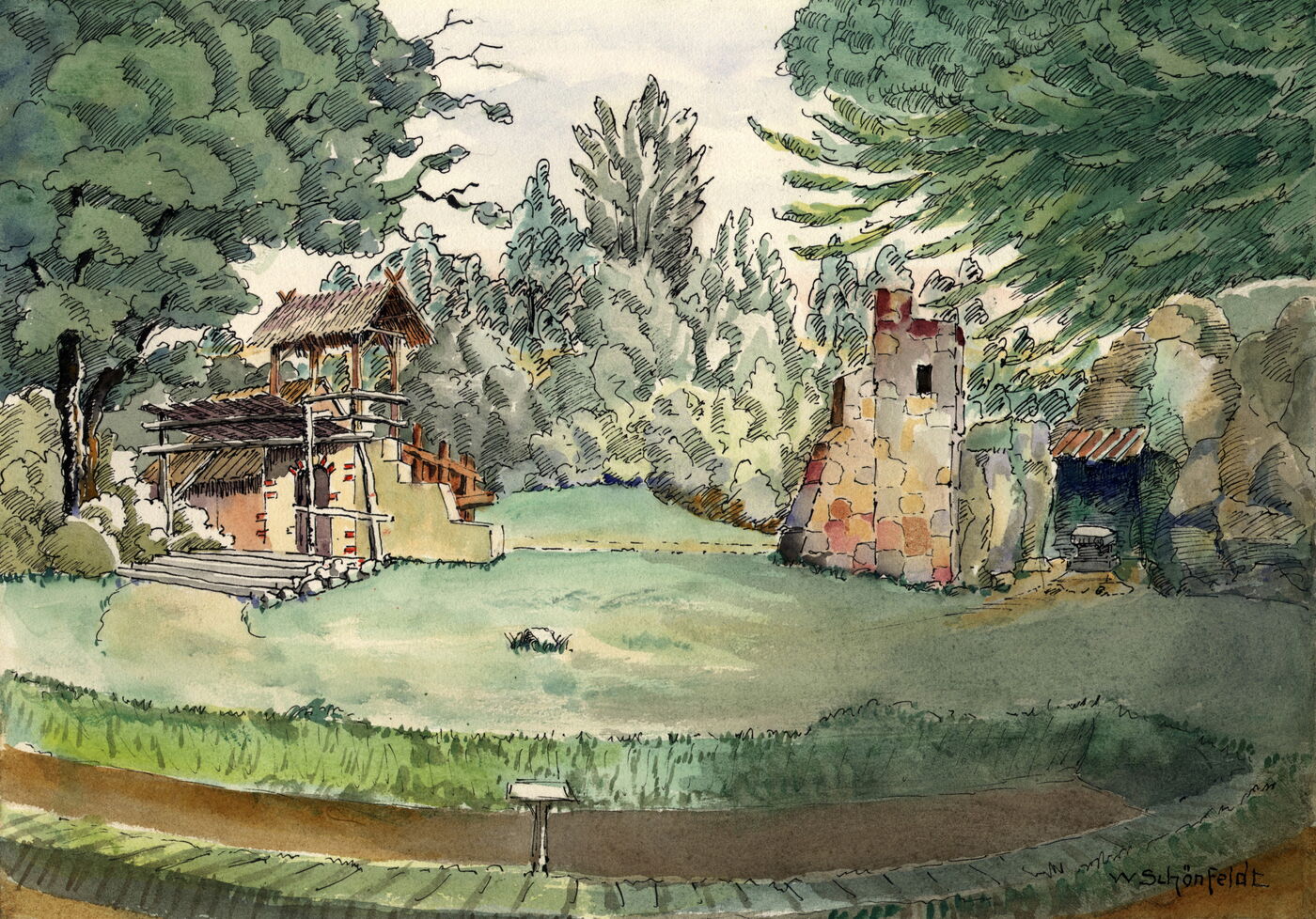 Unter einem weilausladenden Ahorn auf einem Findlings-Rundbau, der vom erhöhten Ufer des Sees vorgeschoben wurde, schreibe ich Ihnen Dank und Gruß.