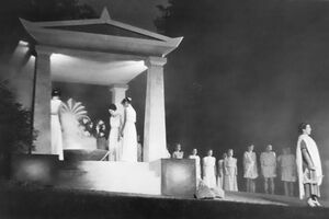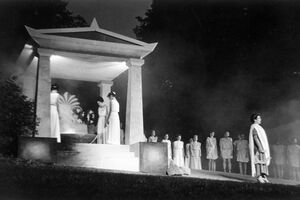 Hinweis: Die historischen Texte und Abbildungen dieser Rückschau (bis in die 1950er Jahre) stammen aus den jeweiligen Programmheften und Fotosammlungen und spiegeln ihre Zeit. Sie könnten Begriffe und Darstellungen enthalten, die heute als diskriminierend oder unangemessen gelten. Die Eutiner Festspiele distanzieren sich daher ausdrücklich von solchen Inhalten. Auch die Erwähnung teils umstrittener Persönlichkeiten erfolgt ausschließlich im historischen Zusammenhang. Der digitale Rückblick soll Geschichte transparent machen und zur kritischen Auseinandersetzung mit Sprache, Haltung und Zeitgeschehen anregen. Wo erforderlich, ergänzen wir erläuternde Hinweise. Hinweise auf sachliche Fehler oder notwendige Kontexte nehmen wir gerne unter info@eutiner-festspiele.de entgegen.