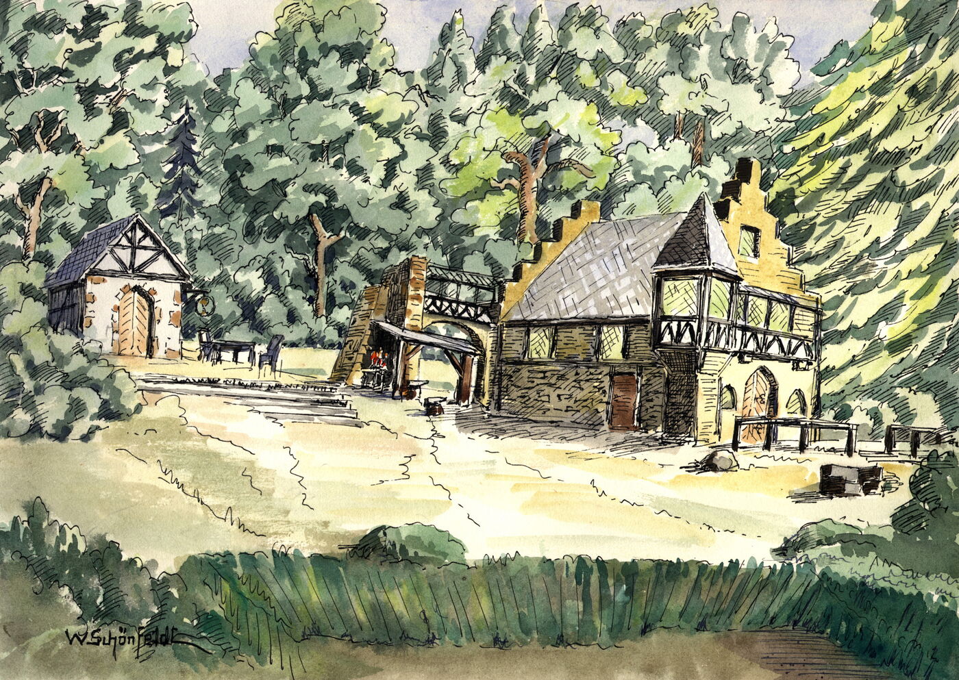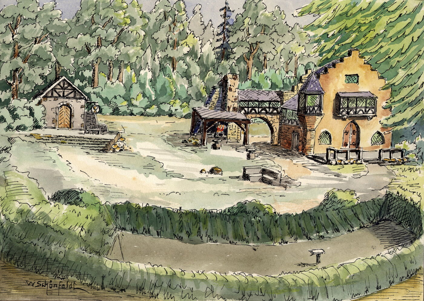 Freundlich lächelnd ging er dem Schlosse zu.