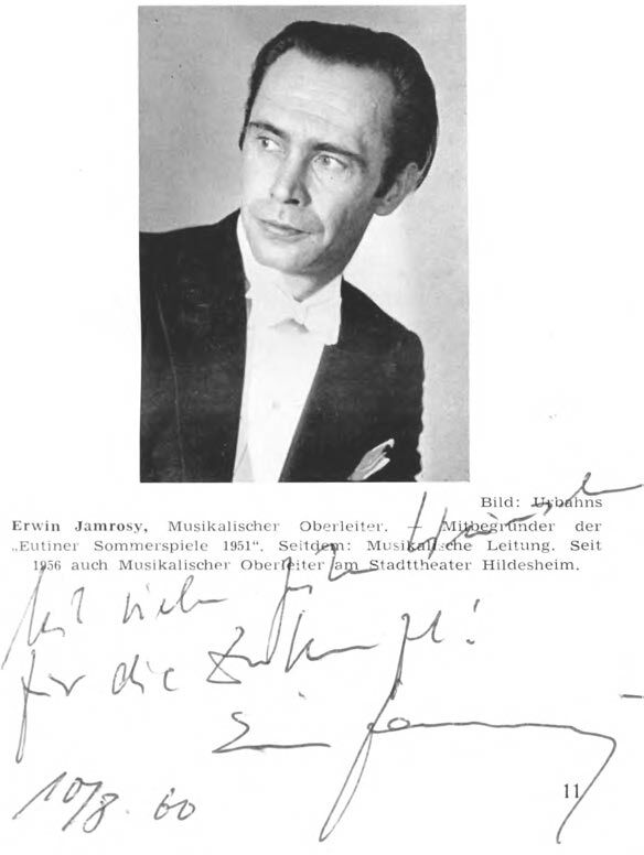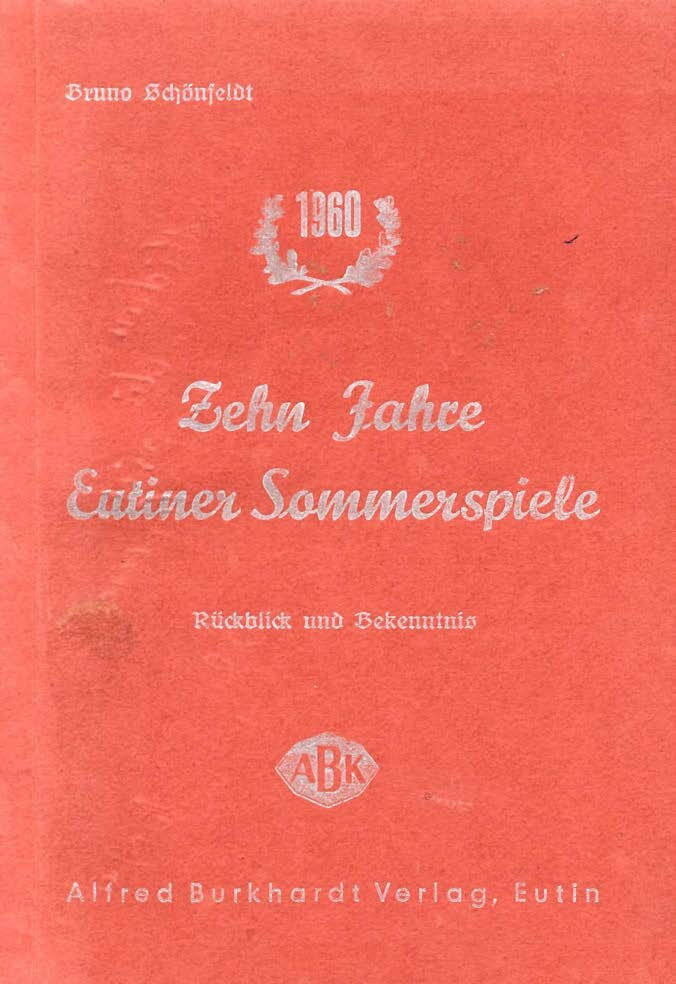 Dem Gedenken des größten Sohnes unserer Stadt, Carl Maria von Weber, verdanken die „Eutiner Sommerspiele“ ihre Entstehung. Wenn sie in diesem Jahr in ihre 10. Spielzeit gehen, so ist das das Verdienst all derer, die an ihrem wirtschaftlichen Aufbau und insbesondere an ihrer künstlerischen Fortentwicklung mit nie erlahmender Tatkraft mitgewirkt haben. Die in den letzten 10 Jahren erreichte Gediegenheit eines unserer Landschaft entsprechenden künstlerischen Darstellungsstils sowie eine klare und sichere Verwaltungsführung waren und sind die Garanten für die erfreuliche Weiterentwicklung dieses weit über die Grenzen unseres Landes wirksamen künstlerischen Instituts.