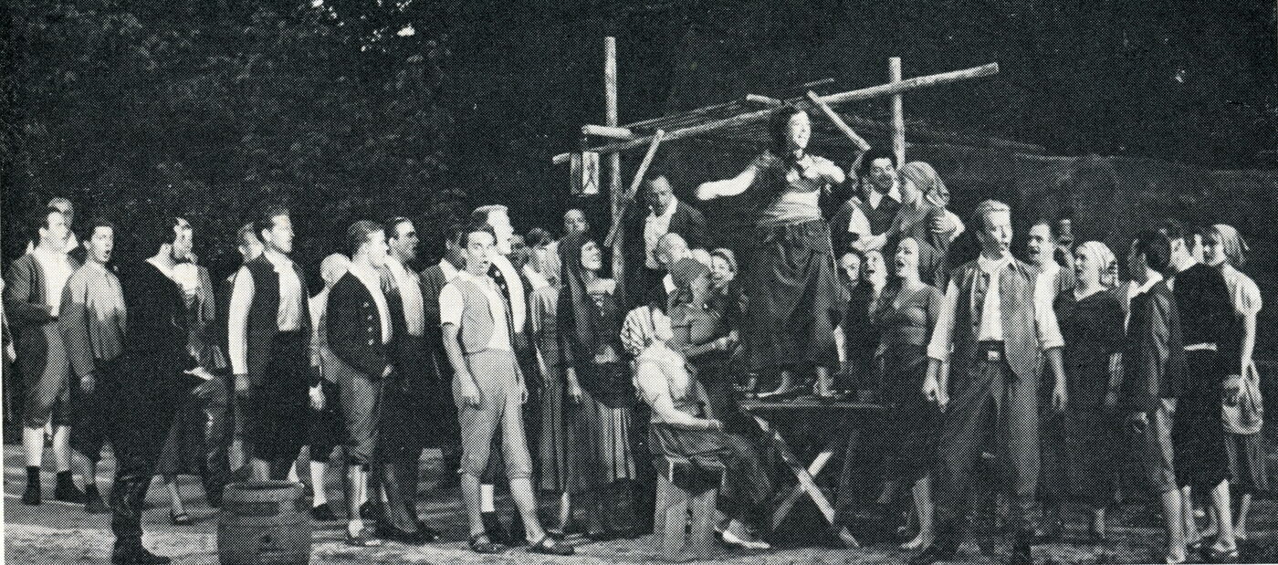 Hinweis: Die historischen Texte und Abbildungen dieser Rückschau (bis in die 1950er Jahre) stammen aus den jeweiligen Programmheften und Fotosammlungen und spiegeln ihre Zeit. Sie könnten Begriffe und Darstellungen enthalten, die heute als diskriminierend oder unangemessen gelten. Die Eutiner Festspiele distanzieren sich daher ausdrücklich von solchen Inhalten. Auch die Erwähnung teils umstrittener Persönlichkeiten erfolgt ausschließlich im historischen Zusammenhang. Der digitale Rückblick soll Geschichte transparent machen und zur kritischen Auseinandersetzung mit Sprache, Haltung und Zeitgeschehen anregen. Wo erforderlich, ergänzen wir erläuternde Hinweise. Hinweise auf sachliche Fehler oder notwendige Kontexte nehmen wir gerne unter info@eutiner-festspiele.de entgegen.