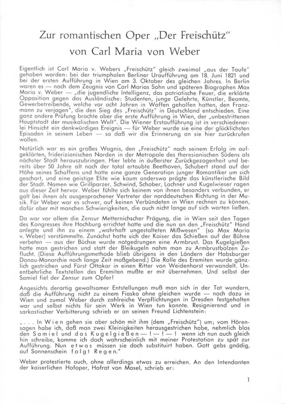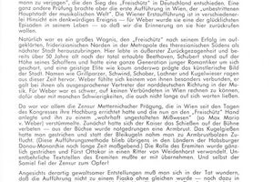 Eigentlich ist Carl Maria v. Webers „Freischütz“ gleich zweimal „aus der Taufe“ gehoben worden: bei der triumphalen Berliner Uraufführung am 18. Juni 1821 und bei der ersten Aufführung in Wien am 3. Oktober des gleichen Jahres.